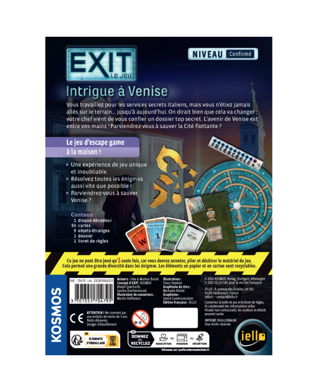 EXIT est un jeu qui reprend les sensations des "escape games". Muni d'indices, de matériel et d'un décodeur, vous aurez pour mission de sortir du jeu le plus rapidement possible.
