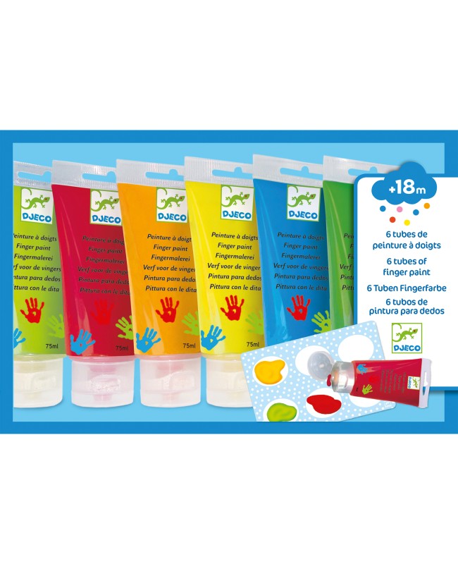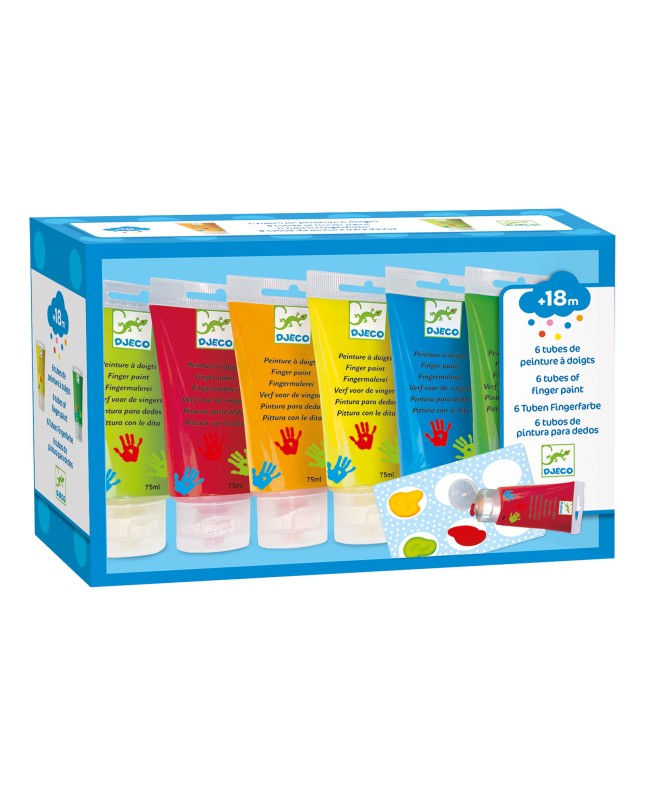 Un coffret de peinture à doigts destiné aux jeunes enfants, dès 18 mois. Idéal pour les premières patouilles !