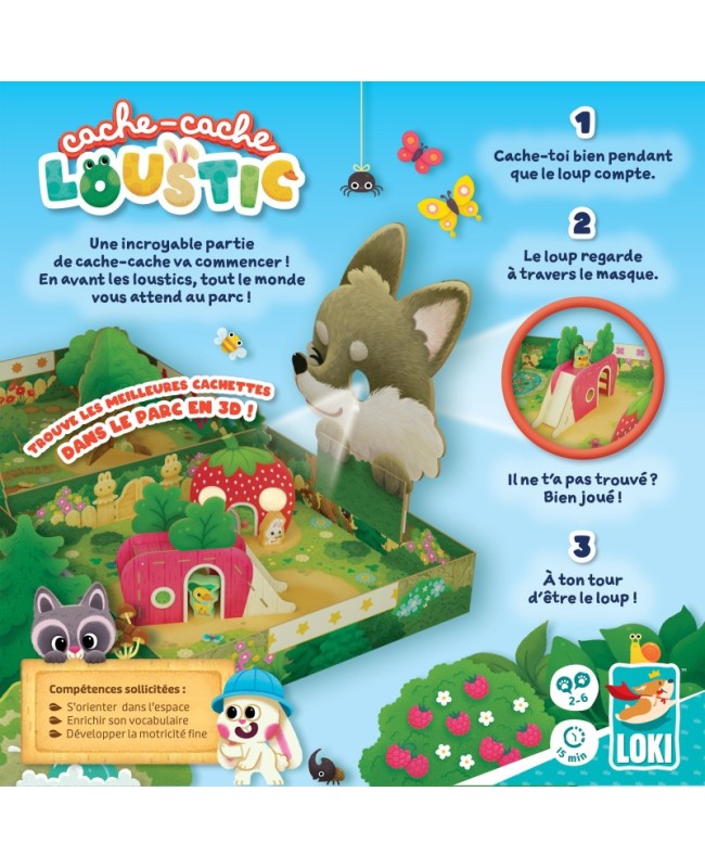 Découvrez le jeu de société "Cache-cache Loustic", inspiré du classique jeu de cache-cache, conçu spécialement pour les tout-petits.