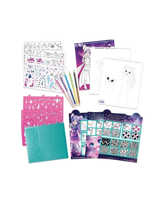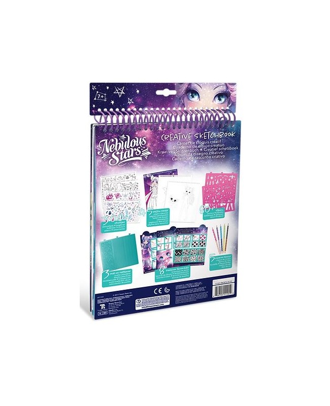 Carnet de croquis Nebulous Stars. 35 pages de croquis, 80 pochoirs, 3 motifs de frottement, 300 autocollants.