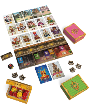 À chacun des quatre tours, les cartes mercenaires s’ajoutent et la pioche augmente, augmentant les effets qui perturberont les stratégies de vos adversaires. À la fin de la partie, le joueur le plus riche sera couronné et dirigera le royaume !