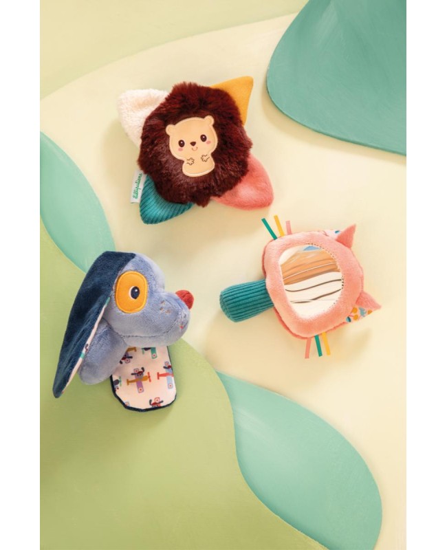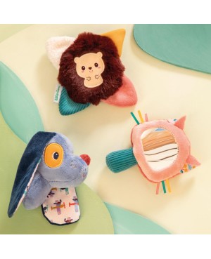 Ce trio doux et coloré se pare aussi de motifs originaux. Ce sont les premiers amis de bébé ! Avec ces hochets animaux en peluche, il apprend à être curieux et s’éveille au monde à son rythme. Leur forme a été pensée pour une prise en main facile par les plus petits. Voilà une belle idée cadeau pour un bout de chou, dans une boîte à l’image de notre joyeuse bande Lilliputiens, pour faire craquer toute la famille ! Bienvenue bébé, bienvenue Jules et les copains !