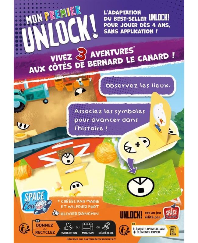 5Plongez dans l’univers d’Unlock! dès 4 ans avec Mon Premier Unlock! et aidez Bernard le canard à accomplir ses missions. Observez bien les cartes qui forment un paysage et associez les demi-symboles visibles sur les cartes à l’aide du pion Bernard pour progresser dans l’histoire. Les petits vont adorer pouvoir mener l'enquête.