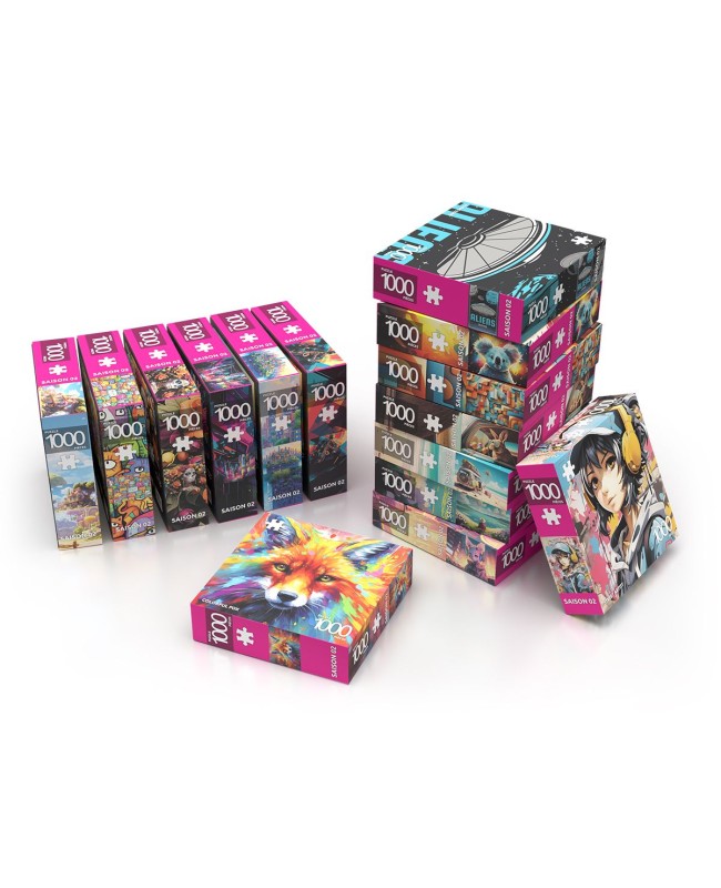 Après le succès de sa saison 1 et de sa saison 2, ABI Games revient avec une toute nouvelle saison 3, pleines de nouveaux visuels plus atypiques encore. C'est ainsi 15 nouveaux modèles de 1000 pièces qui vous sont proposés. Forts de l’engouement suscité par les deux précédentes collections, nous avons pour celle-ci réalisé une sélection minutieuse pour proposer des visuels qui sauront attirer l'oeil de vos clients dès leur entrée dans vos boutiques. Avec des couleurs éclatantes, chaque modèle a été choisi pour capter l’attention et offrir une expérience d’assemblage aussi plaisante que visuellement saisissante.
