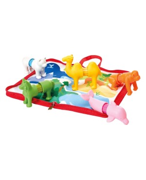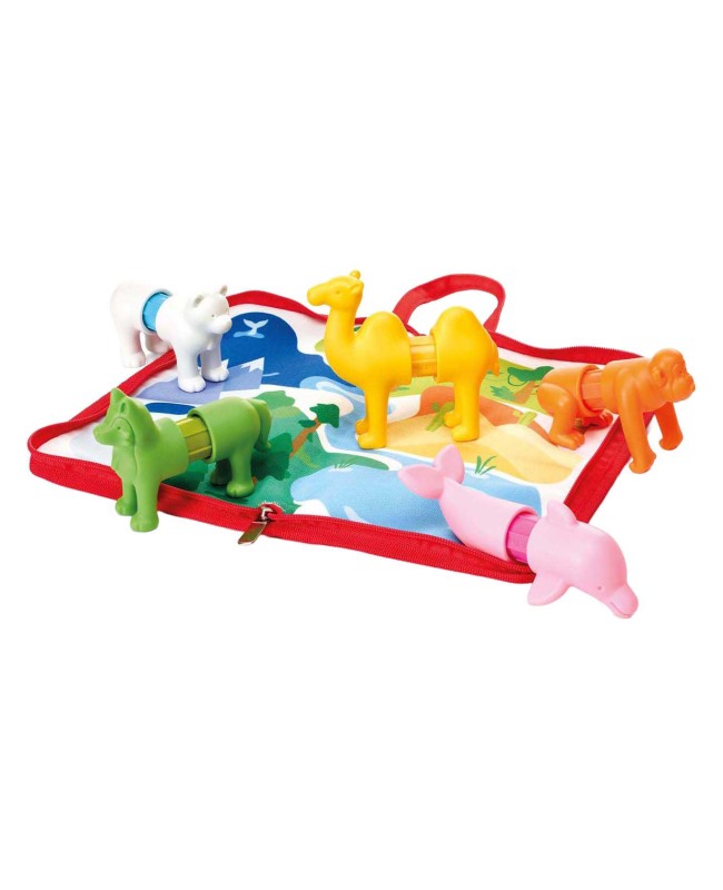 Découvrez 5 nouveaux animaux incroyables de l'Arctique, du désert, de la jungle et d'ailleurs ! Grâce à ce jeu amusant, les enfants peuvent créer leurs propres créatures sauvages : un ours polaire avec une queue de dauphin ? Pourquoi pas ! Ce jouet amusant, fabriqué à partir de matériaux souples, est sûr, durable et parfait pour les petites mains.