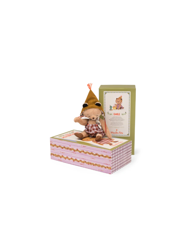 Émile le petit ours est une charmante poupée articulée imaginée par Lucille Michieli. Il aime les gâteaux et compter les papillons ! En compagnie des petits, Émile promet des instants de tendresse et d'aventures inoubliables.