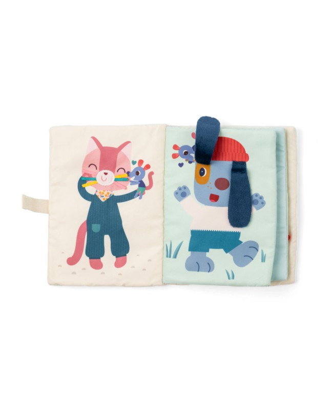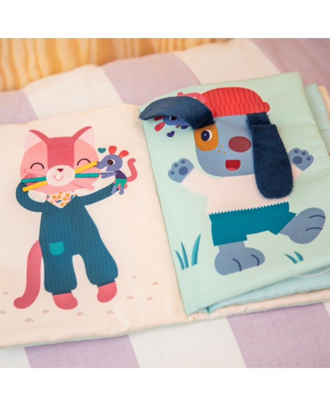 Et si on changeait de look ? Nina a sorti son plus beau déguisement inspiré de tous ses copains ! Au fil des pages, Nina la souris part en balade repérer les détails amusants qui lui plaisent chez ses amis pour les emprunter : la queue et les moustaches de Jeanne le chat, les oreilles de Jules le chien, les yeux de son ami l'escargot... Ce livre d'activités en tissu invite les enfants à découvrir les animaux, leurs caractéristiques et à enrichir leur vocabulaire tout en s’amusant. Page après page, Nina se transforme ! Parcourez toutes les pages jusqu'à la dernière pour découvrir le résultat et retrouver à qui appartient chaque élément !