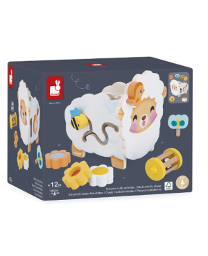 Qu'il est mignon ce mouton en bois à l'allure champêtre ! Fleurs, abeille, papillon… toute la nature est au rendez-vous ! Ce mouton multi-activités propose de nombreux jeux qui vont plaire aux enfants dès 12 mois. Sur le devant, niché au niveau de sa tête, se trouve un petit oiseau magnétique que l'enfant peut s'amuser à enlever et à remettre à sa guise. Sur un des côtés, on retrouve une boîte à forme où bébé peut y insérer 3 fleurs. Cette activité va demander un temps de réflexion aux tout-petits pour savoir comment placer ces formes. Le petit plus ? Chaque fleur possède une surface unique à explorer : un miroir, une partie à gratter et un plexi transparent pour voir la vie en orange ! Sur le côté opposé, on retrouve un petit labyrinthe avec une adorable abeille en bois.