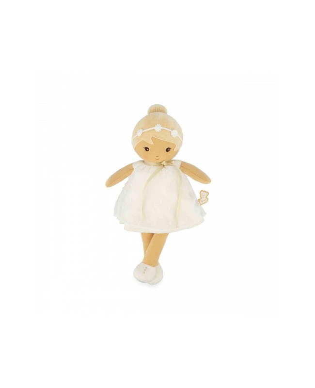 C'est le moment de rencontrer Daphné : une jolie poupée en tissu pleine d'élégance, dans son format 32 cm ! Adaptée à bébé dès sa naissance, elle fait partie de la collection de poupées Tendresse de Kaloo. Élégamment vêtue d'une robe ivoire à pois en organza, la poupée Daphné est prête à célébrer les moments les plus précieux comme un baptême ou un mariage. Son chignon joliment relevé apporte une touche distinguée et ses souliers assortis viennent parfaire son allure raffinée et élégante. Daphné est une poupée qui reflète la pureté et la douceur des instants précieux. Sa tenue aérienne est sublimée par une délicate couronne de fleurs, telle une touche finale de poésie.