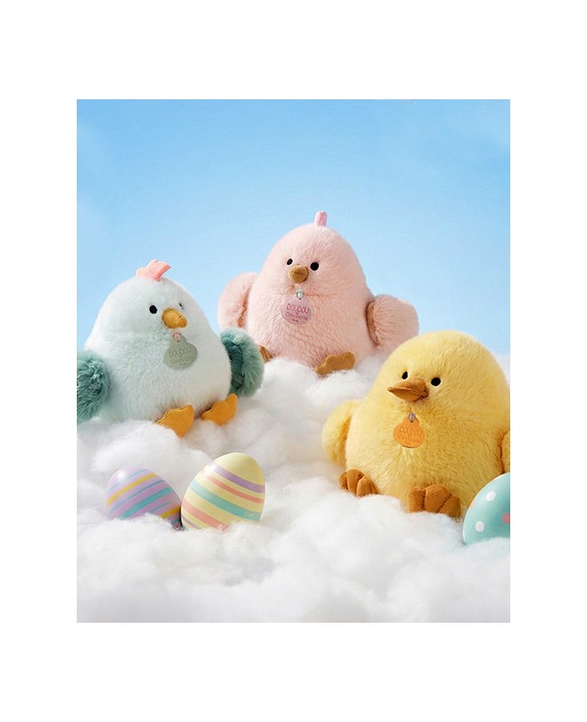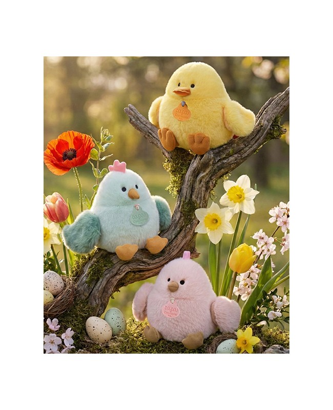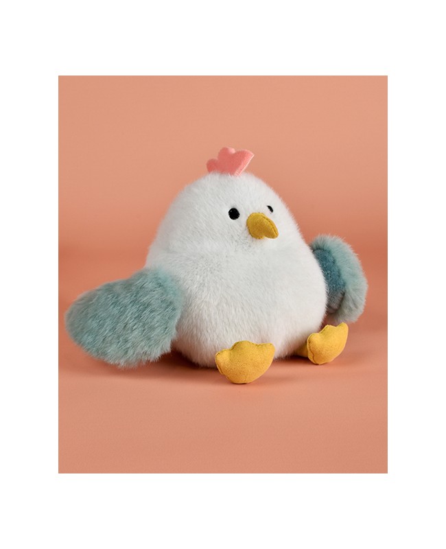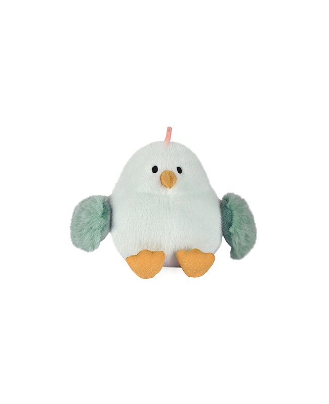 Craquez pour Piou, l'adorable poussin vert/amande de chez Doudou et Compagnie. Avec sa silhouette ronde et généreuse de 15 cm, ce petit compagnon est une invitation immédiate aux câlins.