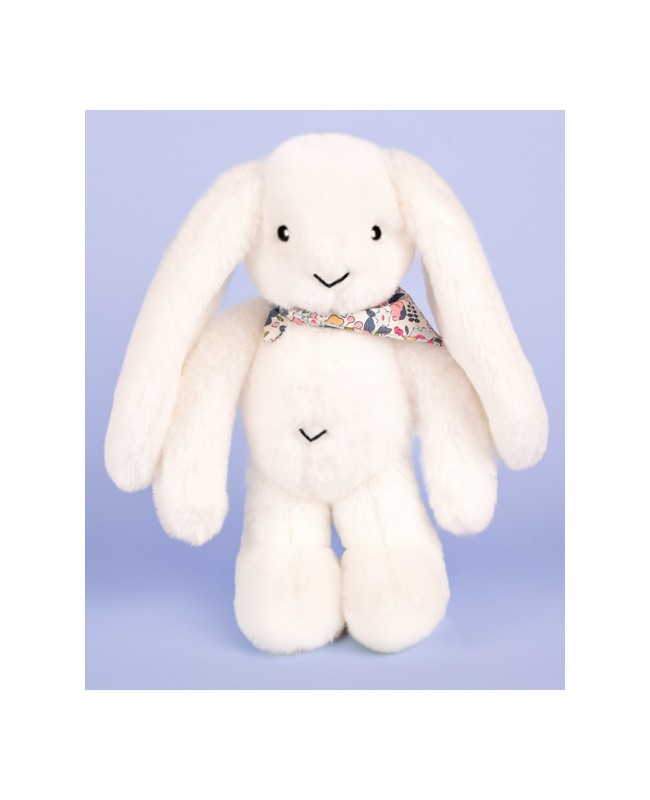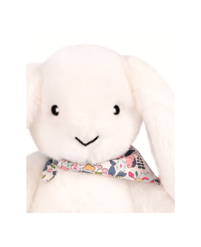 Offrez cette peluche Lapin Fleurette blanc 35 cm, un compagnon de tendresse au toucher ultra-doux. Avec son bandana fleuri, cette peluche allie élégance et réconfort. Son format généreux et son pelage moelleux sont parfaits pour des câlins apaisants et un sentiment de sécurité dès la naissance. Pensé pour être un véritable compagnon de réconfort. Son design raffiné et sa douceur incomparable en font un cadeau idéal pour un souvenir inoubliable.