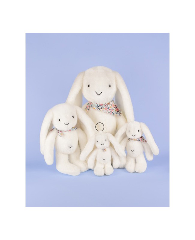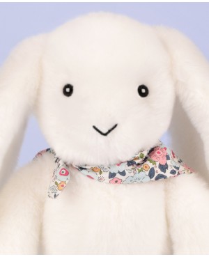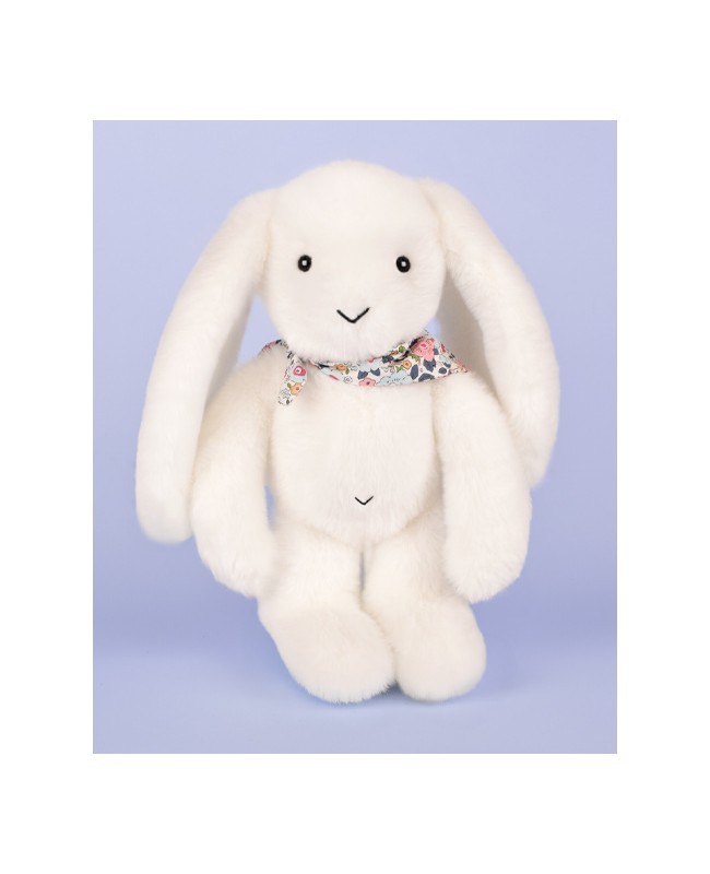 Offrez un cadeau intergénérationnel avec ce Lapin en peluche blanc de la collection LapinFleurette. Ultra-doux et élégant avec son bandana fleuri, il apporte douceur et réconfort à tous, favorisant un attachement durable. Pour adulte ou enfant, cette peluche est une idée cadeau originale.