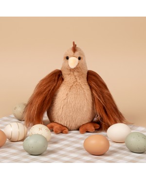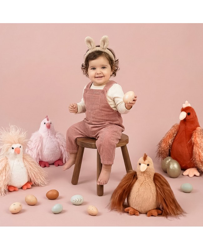 Succombez au charme de cette peluche Poulette Marron Rousse au tempérament bien trempé ! Une peluche ultra-douce et espiègle, idéale pour des câlins complices ou pour sublimer une déco décalée et pleine de vie ! Cette poule en peluche est un cadeau original à offrir à tous âges.