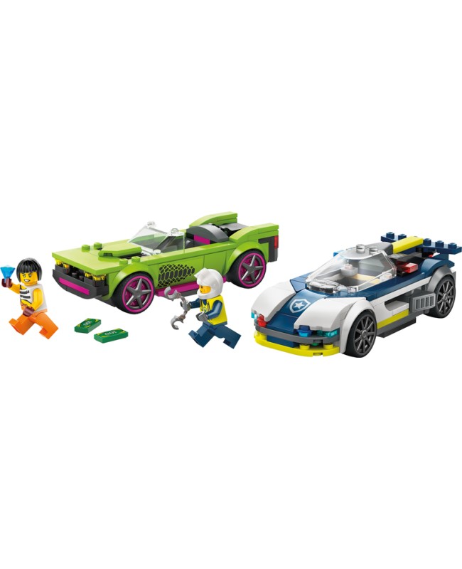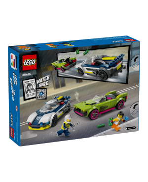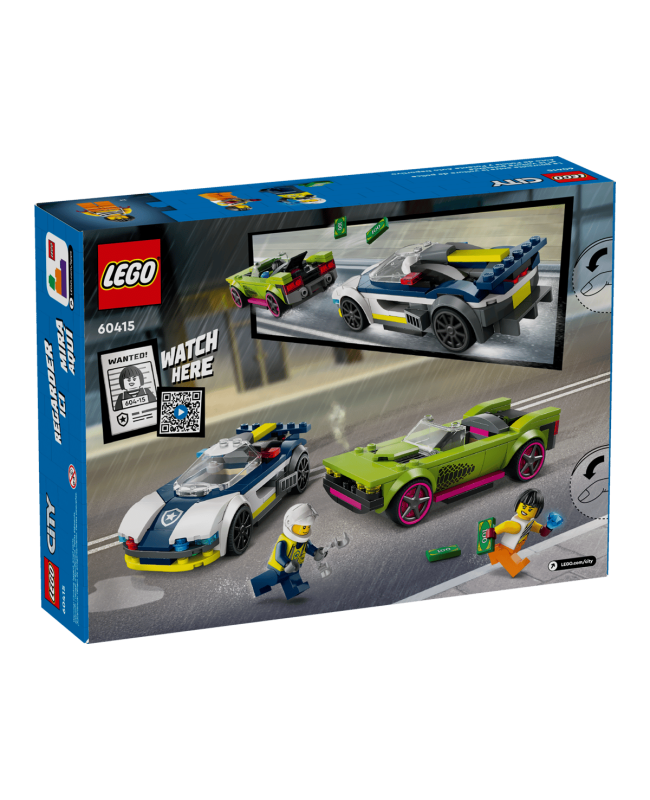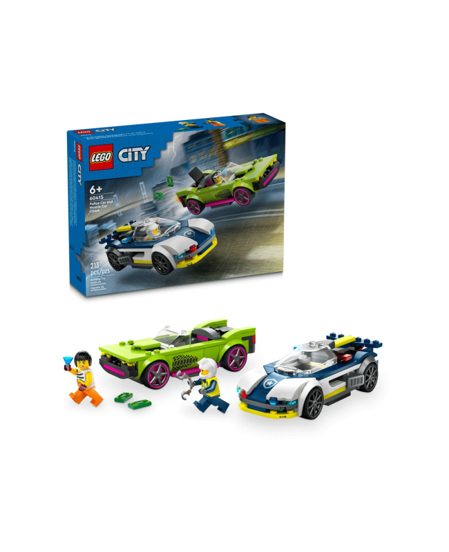 Les enfants dès 6 ans vont se lancer dans des jeux haletants. Source inépuisable de scénarios, le set La course-poursuite entre la voiture de police et la super voiture LEGO® City (60415) inclut une voiture d’intervention de police et un véhicule d’évasion, ainsi que les minifigurines d’un policier et d’une voleuse.