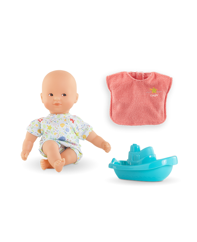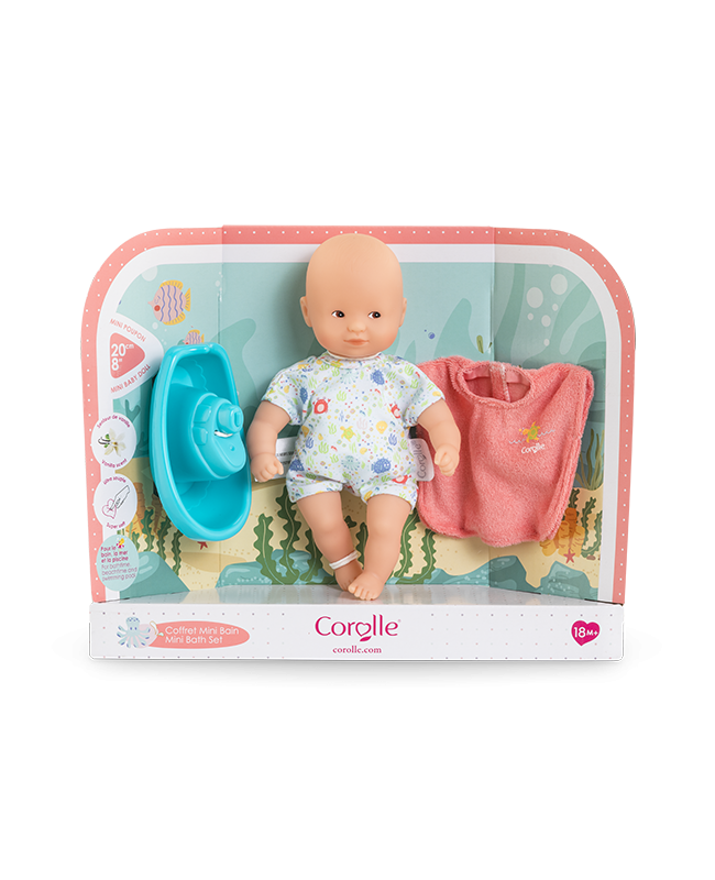 - d'un petit poupon Mini Bain de 20 cm léger et facile à emmener partout,