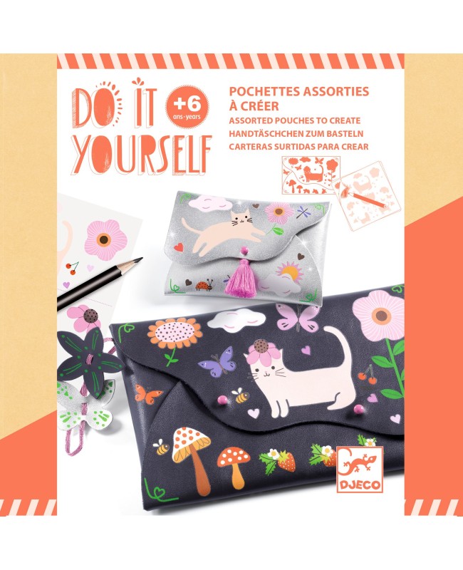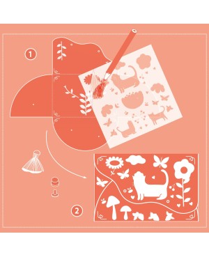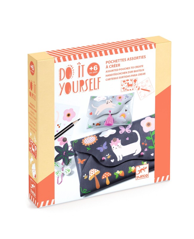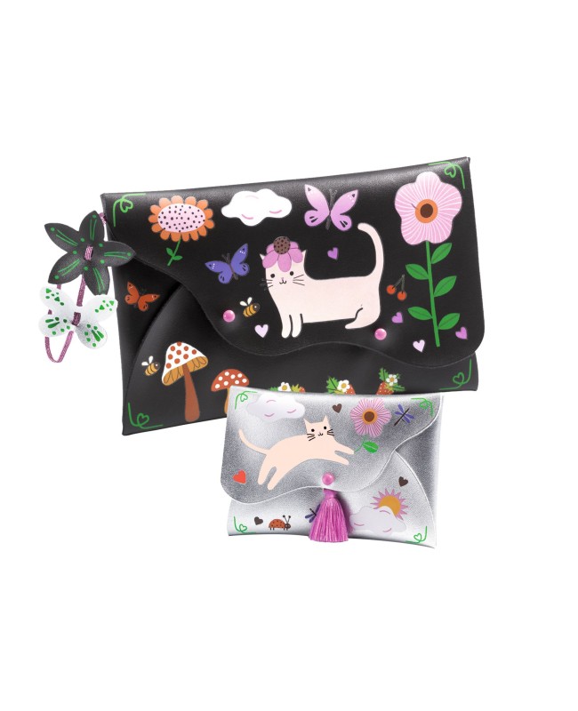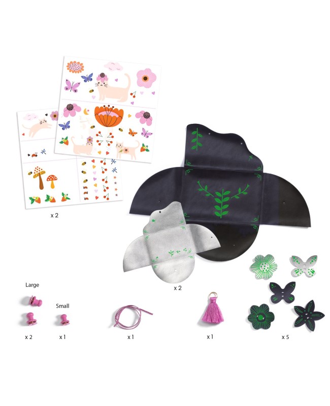 Un kit créatif pour réaliser un ensemble composé d'une pochette et d'un porte-monnaie assortis en cuir synthétique. À l’aide d’un crayon, l'enfant frotte les décalcomanies pour les transférer sur les pochettes en suivant les modèles proposés ou selon ses envies. Puis, il assemble chaque pochette à l'aide des fermoirs à visser, ajoute le pompon, la dragonne et les jolies décorations en simili-cuir. Quelle fierté d'utiliser ses nouveaux accessoires fashion !