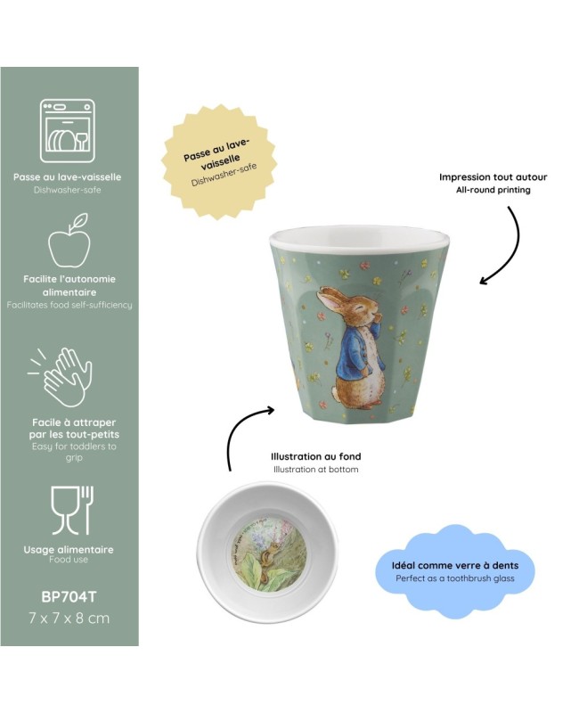 Contenance (ml)150MatièreMELAMINEÂge conseillé6m+Dimensions (cm)7,5 x 7,5 x 7,5Conseil d'entretienLaver avant la première utilisationIllustrationSoledadCouleurvert