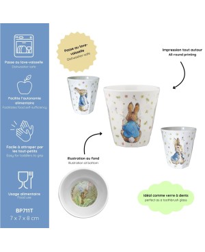 Contenance (ml)220MatièreMELAMINEÂge conseillé18m+Dimensions (cm)8,6 x 8,6 x 9Conseil d'entretienLaver avant la première utilisationIllustrationPierre LapinCouleurblanc