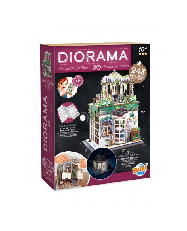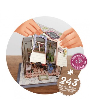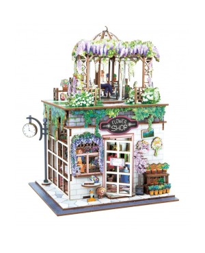 Assemble les pièces en bois et construis ta boutique de fleurs miniature.