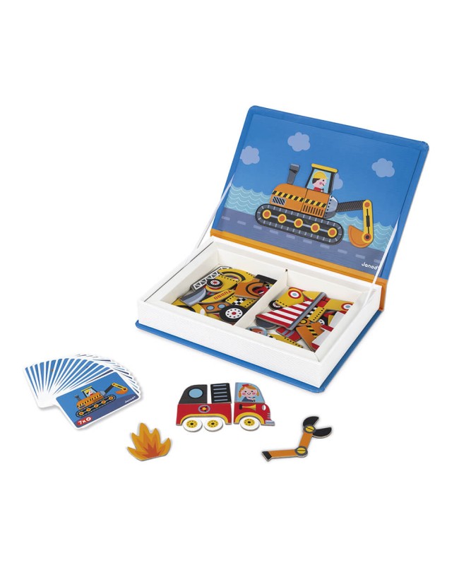 Un coffret qui renferme un trésor ! Le Magnéti'book s'offre une version bolides pour les passionnés d'engins en tout genre dès 3 ans ! Les enfants vont adorer créer et inventer des véhicules grâce aux 50 magnets fournis ! Ils auront le choix entre reproduire les modèles des véhicules des 18 cartes modèles (camion de pompier, sous-marin, tank, bateau, avion…) ou puiser au fond de leur imagination pour créer les véhicules du futur ! Seul ou à plusieurs, le Magnéti'book bolides permet aux enfants de manipuler des pièces et de les assembler pour créer tout ce qui leur passe par la tête ! Facile à transporter grâce à son format livre, ce Magnéti'book occupera aussi vos enfants lors d'un trajet en voiture ou pendant les repas de famille.