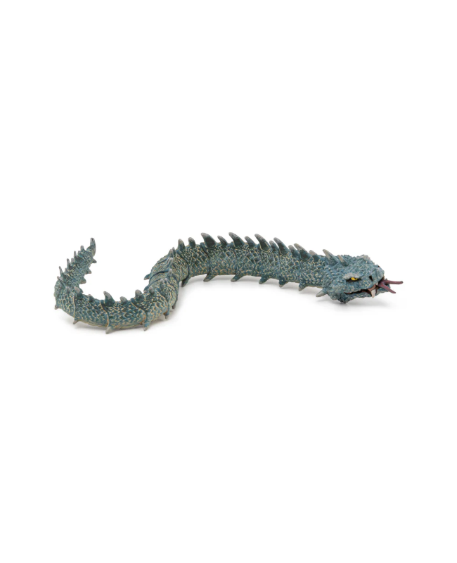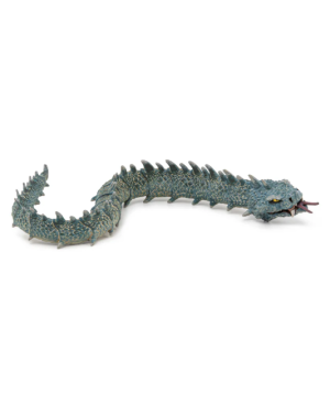 Le Basilic Papo possède un corps complètement articulé. Il est considéré comme le roi des serpents et on raconte qu'il est né du sang qui coula de la tête tranché de la Gorgone Méduse. Tout comme sa mère, son regard peut vous transformer en pierre et son venin est mortel. Il est très grand et très rapide, il peut entendre une branche craquer à plus de 3 km.