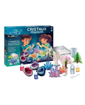 Faites découvrir à vos enfants la science en s'amusant grâce à 10 expériences pour créer des cristaux magiques ! Et si créer des cristaux devenait un vrai jeu d’enfant ? Avec le coffret "Cristaux Magiques", la science se transforme en aventure fascinante ! En seulement quelques jours, fabriquez de superbes cristaux colorés et découvrez les secrets de la cristallisation à travers 10 expériences incroyables.