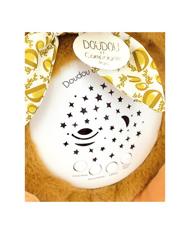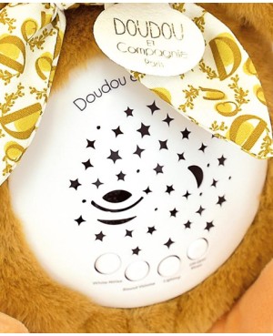 Entretien : retirez le boitier lumineux et utilisez un sac à doudou pour laver Doudou dans un bain à 30° afin qu'il conserve sa douceur
