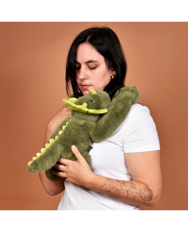 Grâce à ses longues pattes avant lestées, le Dinosaure en peluche Podcolle offre une sensation de réconfort et de sécurité. Blottissez-le contre vous, posez-le sur votre épaule, et ressentez une présence apaisante. Idéal pour les moments câlins et pour réduire le stress.